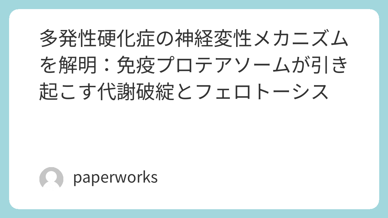 多発性硬化症の神経変性メカニズムを解明:免疫プロテアソームが引き起こす代謝破綻とフェロトーシス